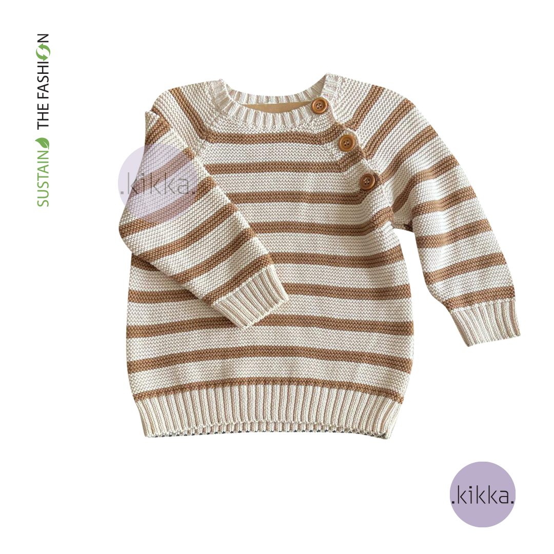 The classic striped design and cute buttons on the raglan sleeves add a fun, gender-neutral touch. With a round neckline, this sweater is a versatile piece that stays stylish all year round.