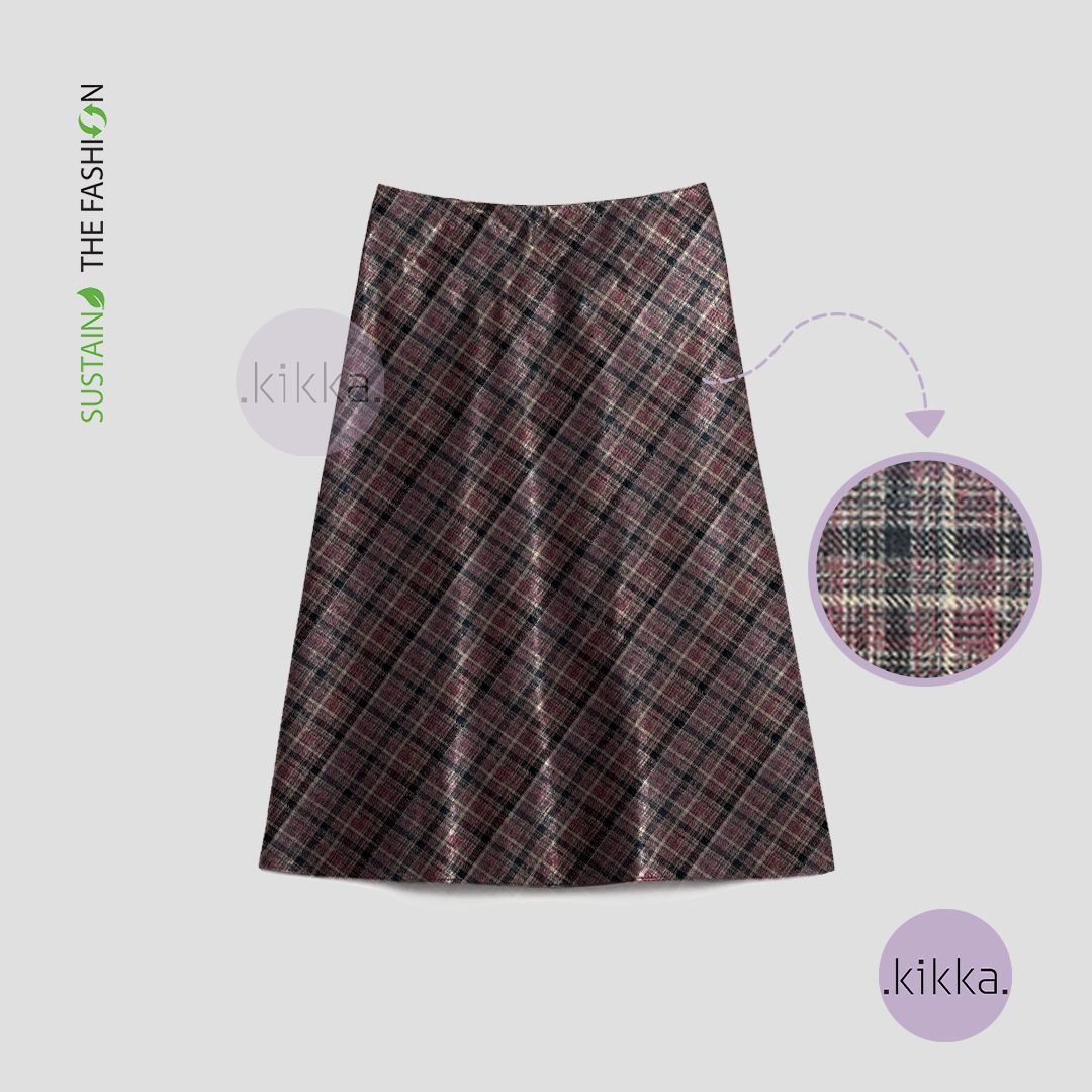 The rich plum-colored checkered fabric adds a modern, elegant touch, while the below-the-knee length ensures it’s versatile for any occasion.